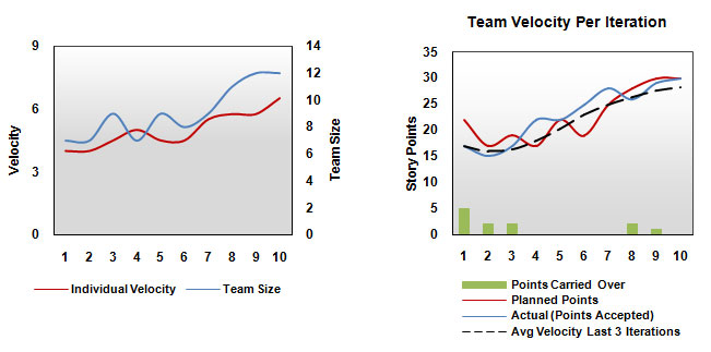 These metrics, updated at the end of each sprint, enable the Agile Team to systematically see and remove specific obstacles affecting their performance. They also provide the team with essential feedback on the results and business impact of their efforts on a frequent basis. As the team refines its scrum practices sprint by sprint, these measures show the impact of the changes made in weekly retrospectives.