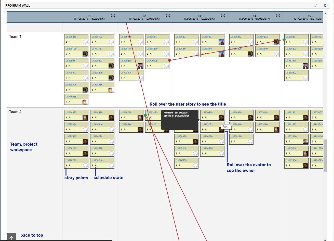 We created a plug-in we call the Virtual Program Board to solve the problem of visualizing the whole PI/release plan across different workspaces with scope attached to dispirate heriarchies. This plug in will allow you to tag milestones, features, and user stories to a PI or release regardless of how you’re organized, giving you a full view of your plan that is updated in real time.